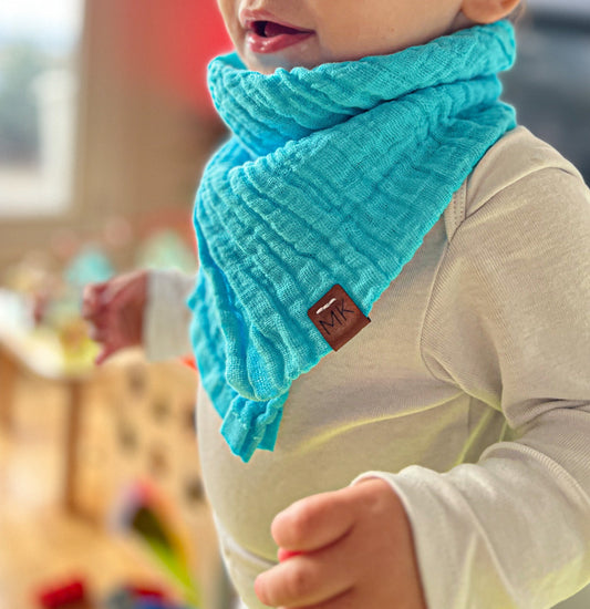 Snoods en mousseline pour bébés et enfants. Grâce à sa fermeture à double pression, il est évolutif et suit la croissance de l'enfant. À la fois pratique, coloré et très agréable à porter.